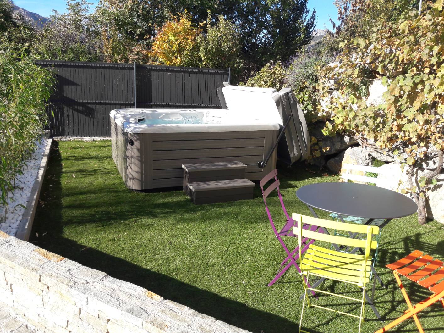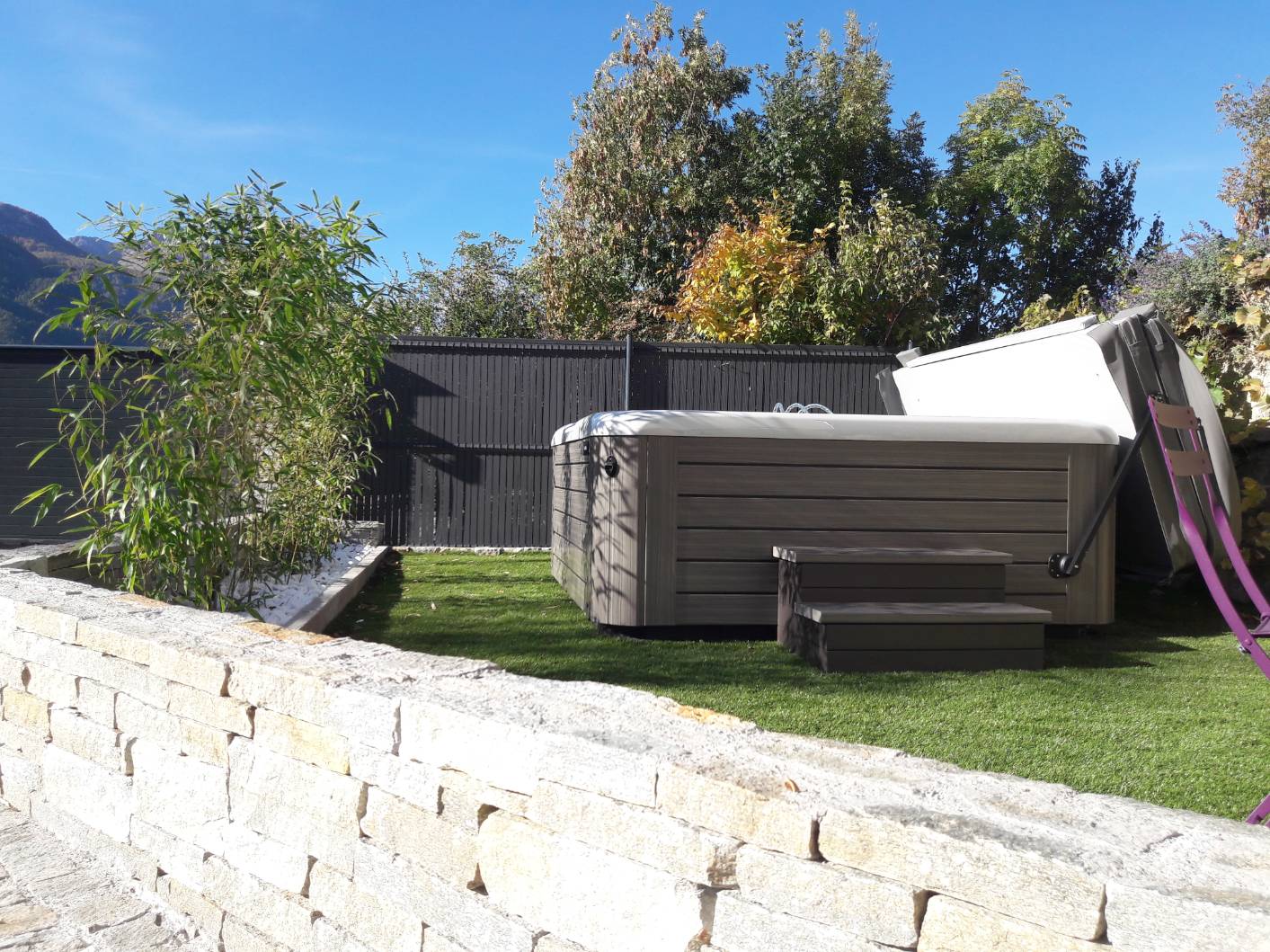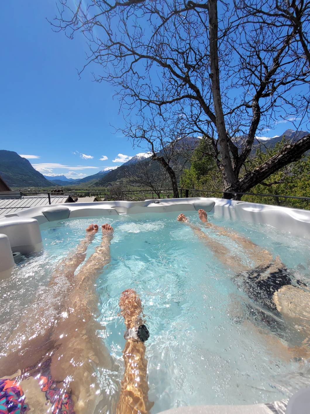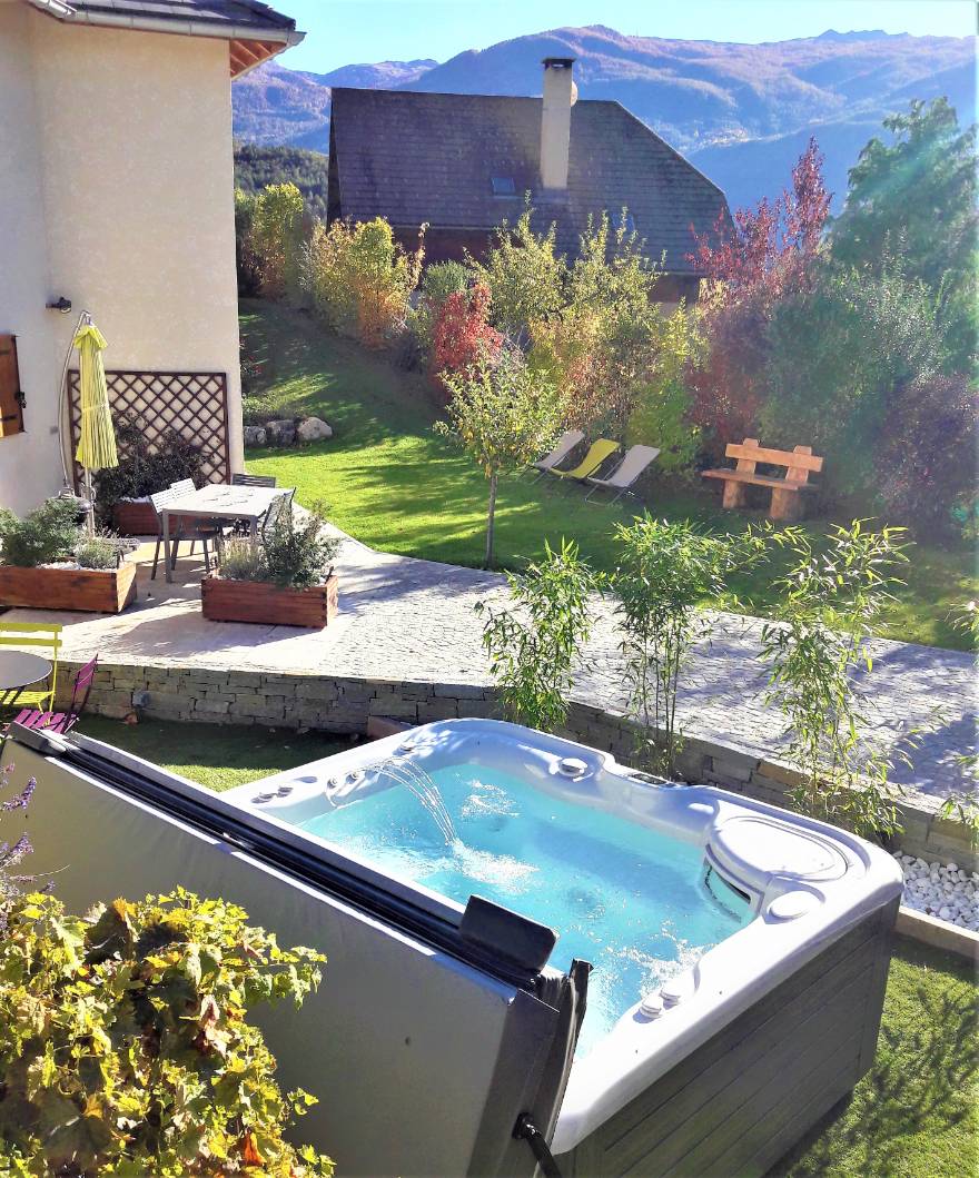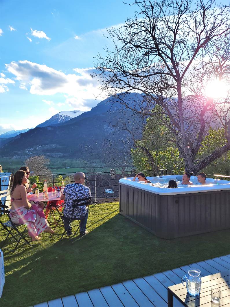 - Un spa extérieur de 5 places privatif et attenant au gîte, et en service en toute saison.